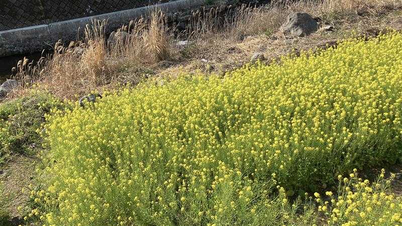 川沿いの桜の開花はまだ先のようですが、菜の花は変わらずきれいに咲いていました。