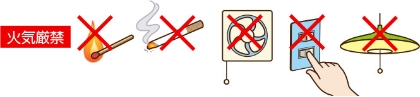 引火する恐れがあるので、換気扇や電灯等のスイッチには絶対に手を触れないでください。