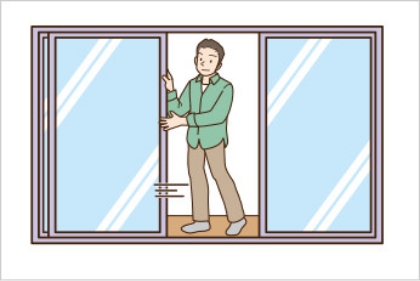 窓を開ける窓や戸を大きく開けて、部屋の空気を入れ替えてください。