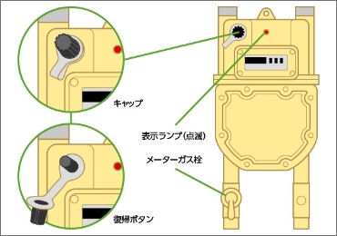 ※少量のガス漏れの場合、ガスは止まりません。マイコンメーターの表示ランプが点滅します。